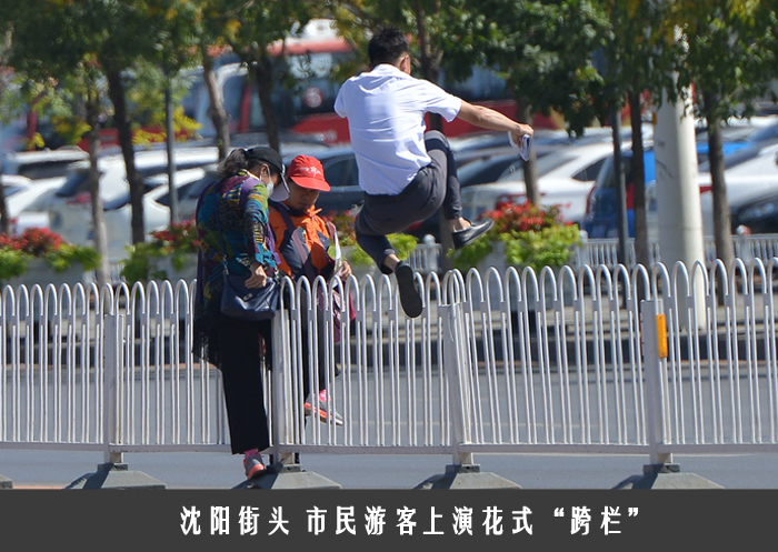 2016年09月19日,辽宁省沈阳市,浑南大道繁华街头人头涌动,中外市民为超近路上演集体“跨栏”秀过街忽视安全,让人为之捏了一把汗,交通稳静化的概念也慢慢走近人们的视野。