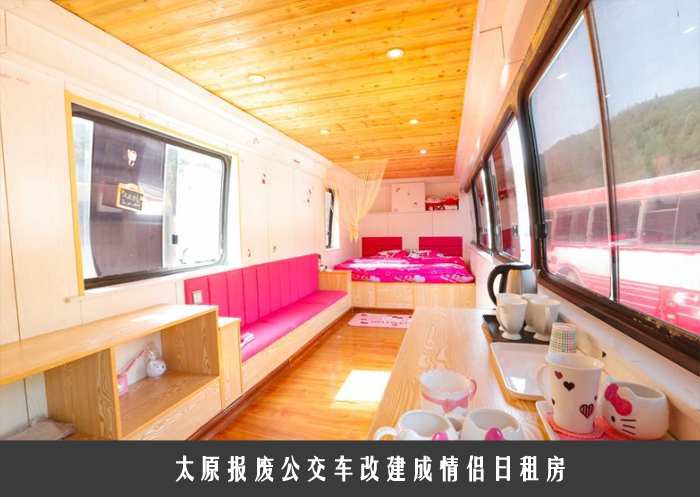 山西省太原市,某景区回收数十辆废旧公交车改建成房车供游人休息...